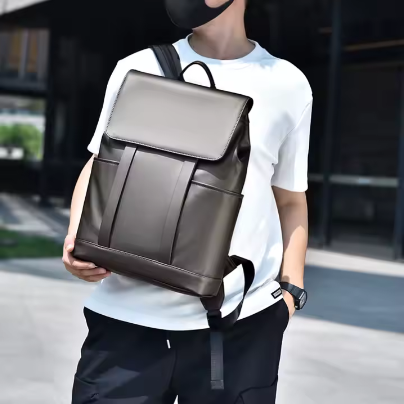 AeroFold PU Leather Backpack – where sleek design meets smart functionality. Crafted from premium PU leather, this unisex backpack is both waterproof and anti-theft, keeping your essentials secure and protected. It features a built-in USB charging port, a soft handle, and air-cushion shoulder straps for all-day comfort. With ample space to carry your day-to-day belongings, it easily fits a 15-inch laptop and more. Perfect for work, travel, or campus, AeroFold delivers style, safety, and convenience in one versatile package.