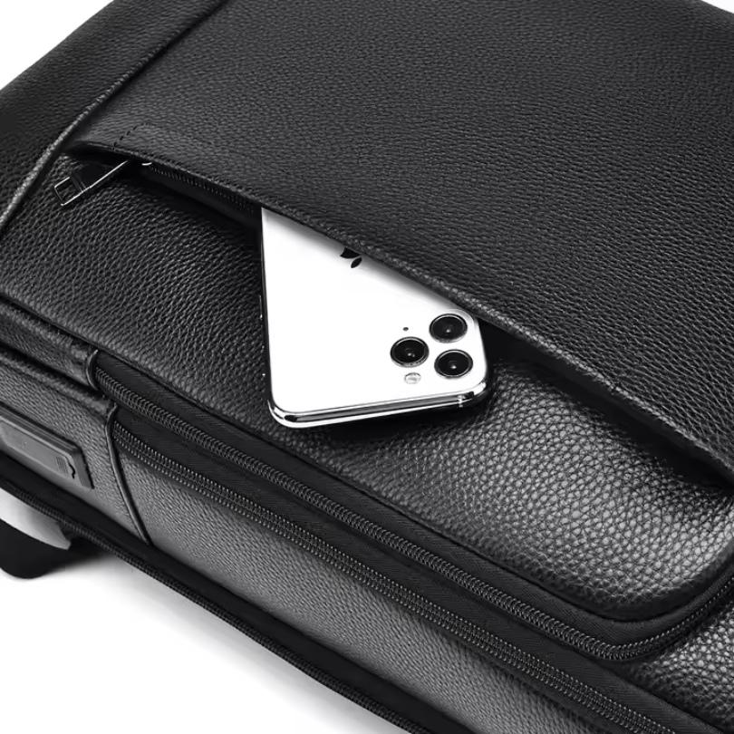 Introducing the Devon Row Luxury Leather Shoulder Backpack – where timeless craftsmanship meets modern convenience. Made from premium first-layer cowhide, this elegant backpack is designed for business, commuting, and daily sophistication. The rich leather exterior is paired with smart functionality, including a USB charging port and a dedicated laptop compartment. Whether you're heading to the office or traveling in style, its sleek structure and versatile shoulder-carry design offer both comfort and class. Devon Row – crafted for those who move with purpose.